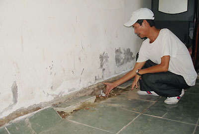 Sau 3 năm đưa vào sử dụng, tòa nhà A3 (15 tầng) khu Đền Lừ 2 đã bị sụt lún nghiêm trọng. Toàn bộ nền tầng một lõm xuống như lòng chảo, gạch lát sàn vỡ toác.